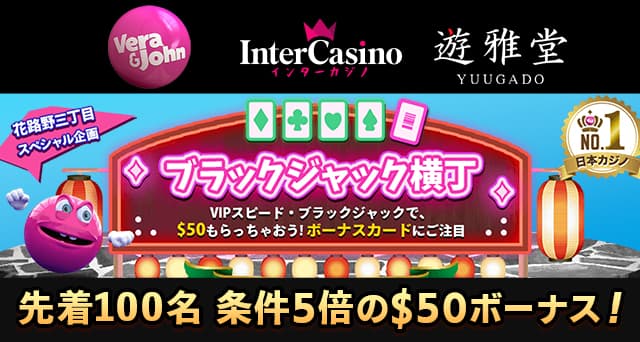 またインターカジノは業界知名度ナンバーワンのベラジョンカジノや遊雅堂といった人気ブランドと姉妹カジノであり、非常に高い水準のサービスを受けることができます。