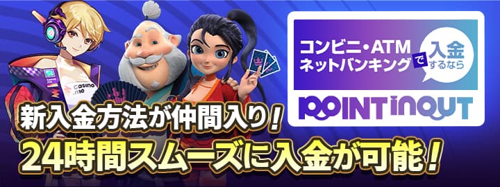 カジ旅および姉妹カジノのカジノミーにて、新たな入金方法『POINT INOUT』が追加されました。