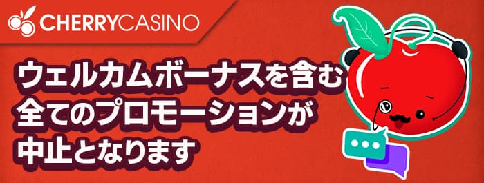 【チェリーカジノ】開催中のすべてのプロモーションが中止となります。