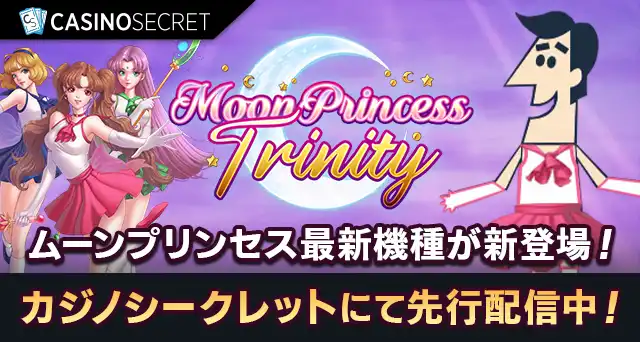 カジノシークレットにて、落ちモノスロットの中でも不動の人気を誇るムーンプリンセスの最新機種『ムーンプリンセス・トリニティ』が先行導入されました。
