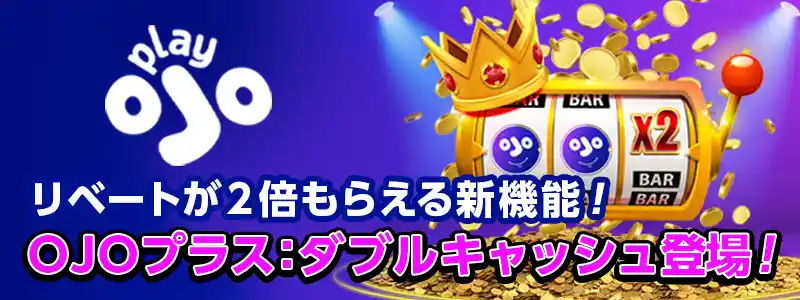プレイオジョにて、勝ち負け関係なく遊んだ分だけキャッシュリベートがもらえるOJOプラスに新機能『OJOプラス:ダブルキャッシュ』が搭載されました。本アップデートでこれまでのOJOプラスのキャッシュリベートが2倍もらえる形になります。