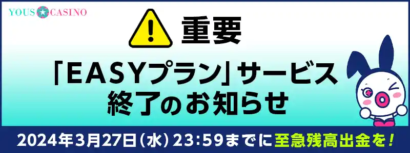 【ユースカジノ】EASYプランのサービスが終了します