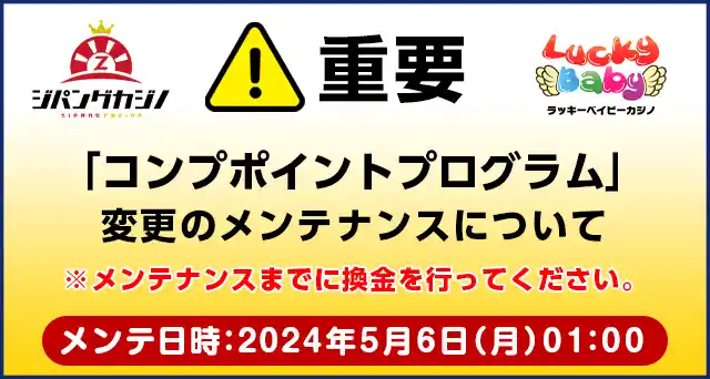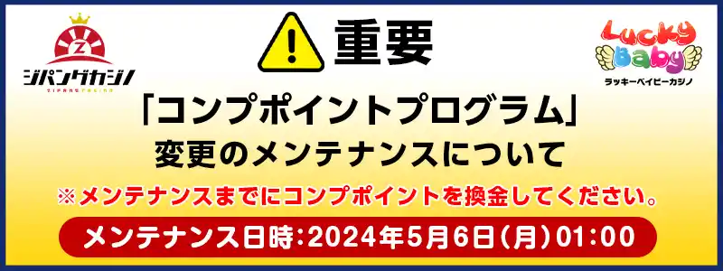 【重要】ジパングカジノ・ラッキーベイビーカジノのコンプポイントプログラムの変更に関するお知らせ
